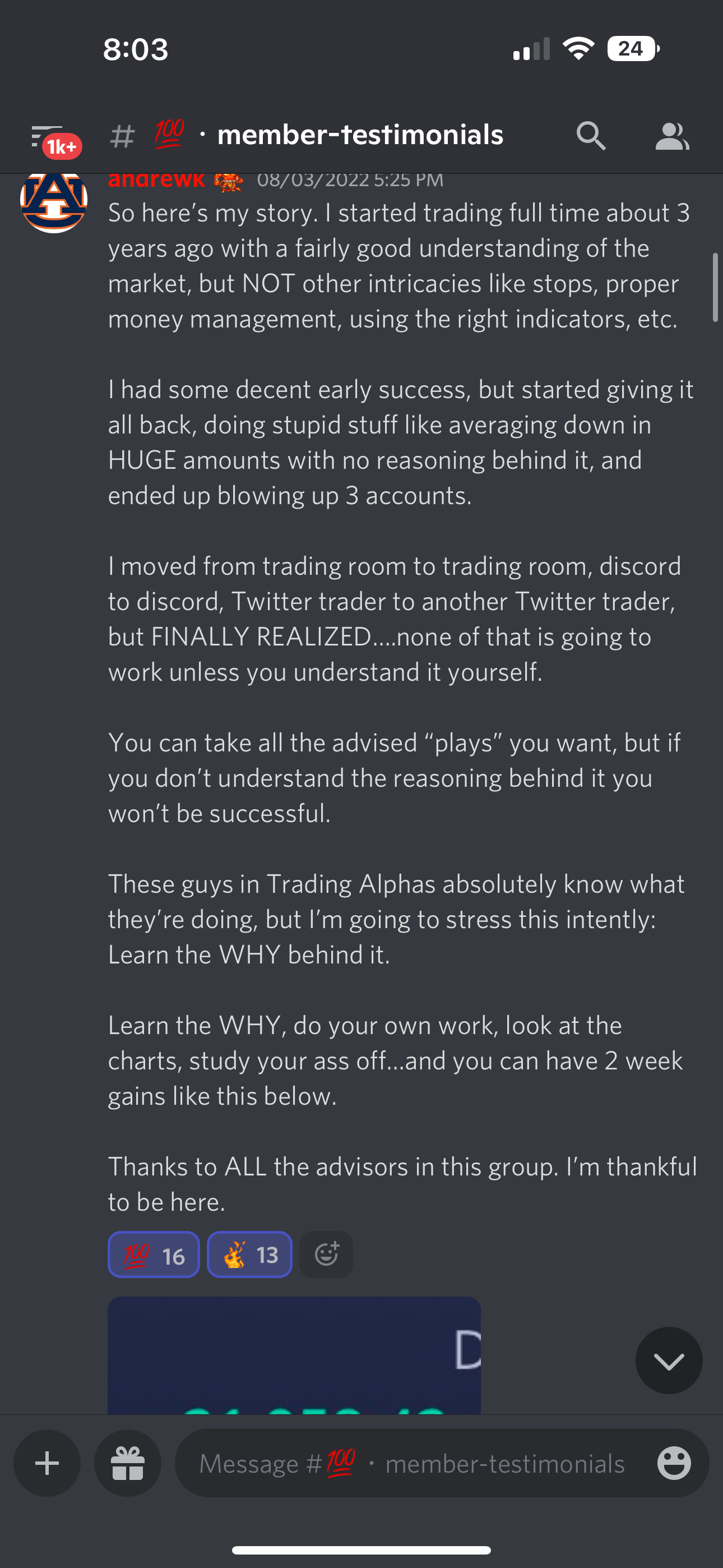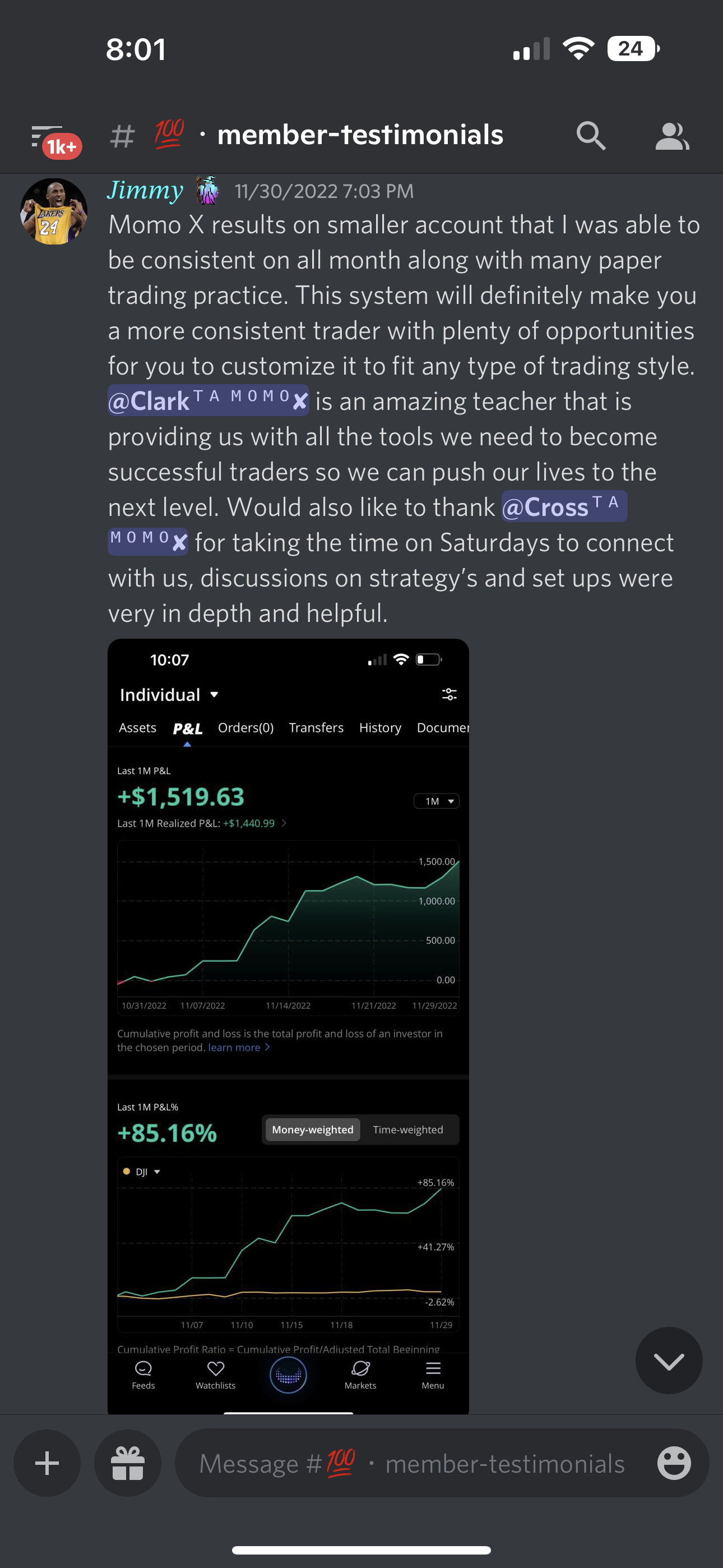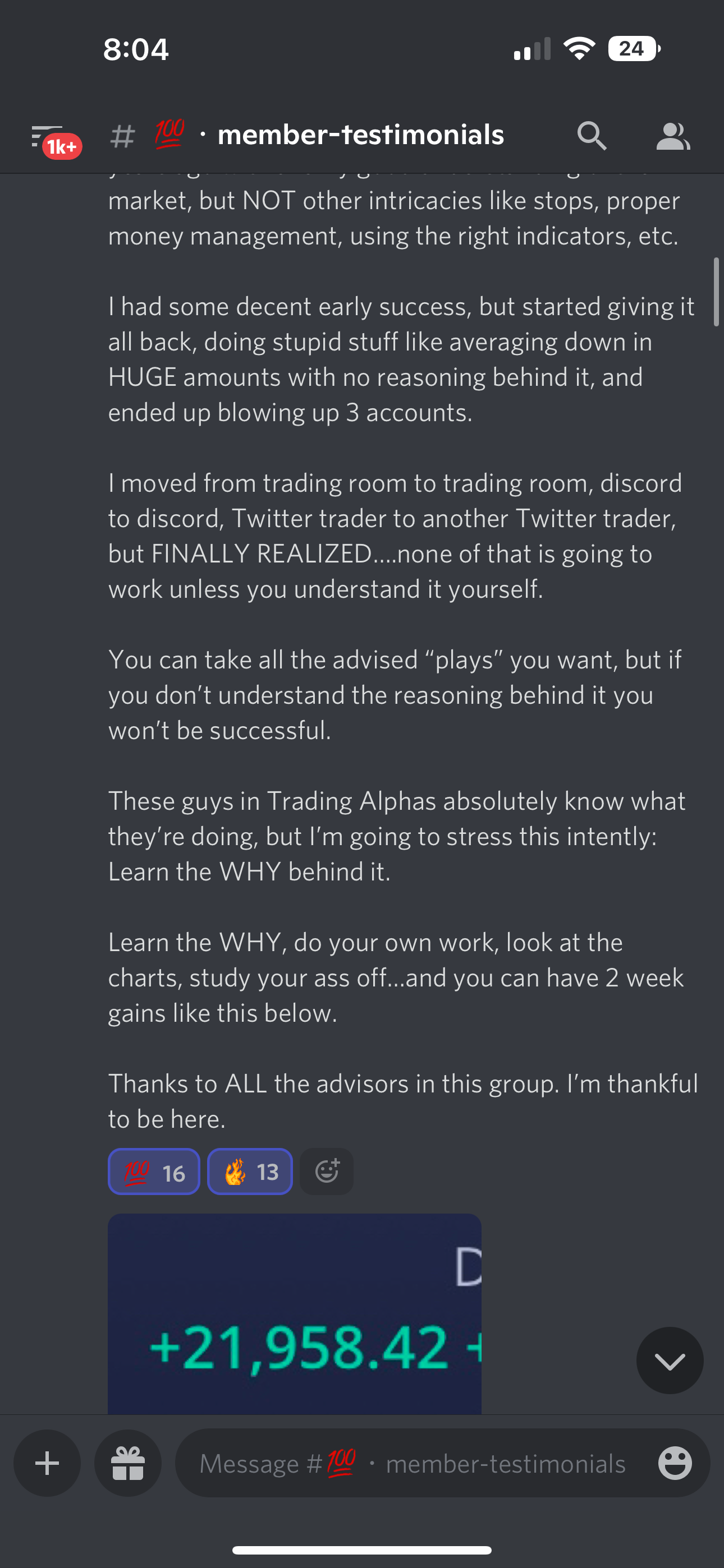 Join our discord to see millions in cumulative profits and thousands of additional member results. Learn how to control your mistakes, and develop a profitable trading strategy with edge. Click the link below and join us today.
